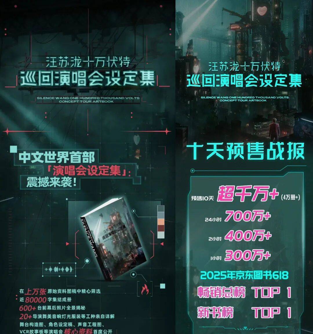 2025年,中文首本演唱会设定集《十万伏特巡回演唱会设定集》正式发行,10天预售破4w册,超千万元销售额。对粉丝来说,这是彻底读懂罗曼城的百科全书,包含了世界观、小怪物角色档案等内容;对行业来说,这更是一份“如何系统建造一个现象级演唱会IP”的实操手册。
