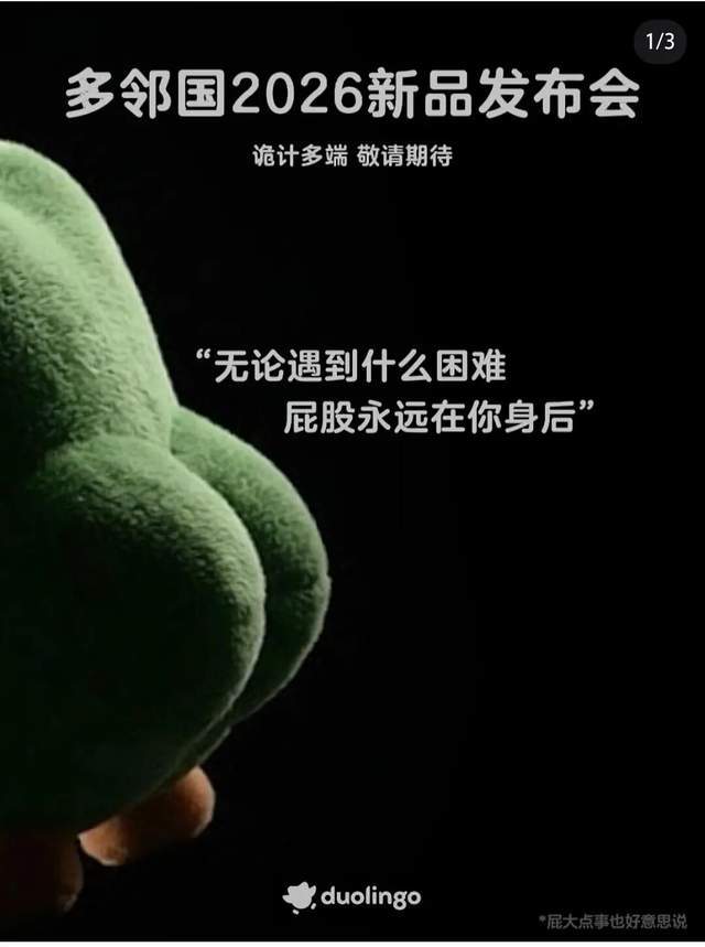这张让评论区大呼震撼的“翘屁嫩鸟”图片,原来是2月1日多邻国一次最新周边的发布会。在发布会视频里,多邻国用描述高科技互联网产品的口吻形容三款普通多邻国周边,并且刻意放大了周边“多儿”那饱满圆润的臀部。