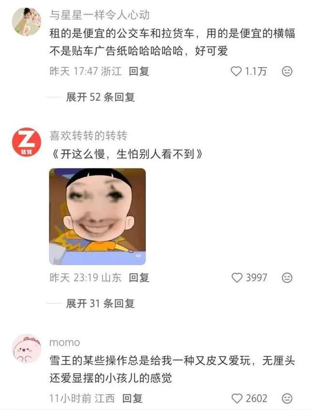 不少网友在评论区纷纷调侃,“雪王挣点钱全花自己身上了”“没有人比雪王更懂‘爱你老己’”“两块钱的公交车坐了一天”。