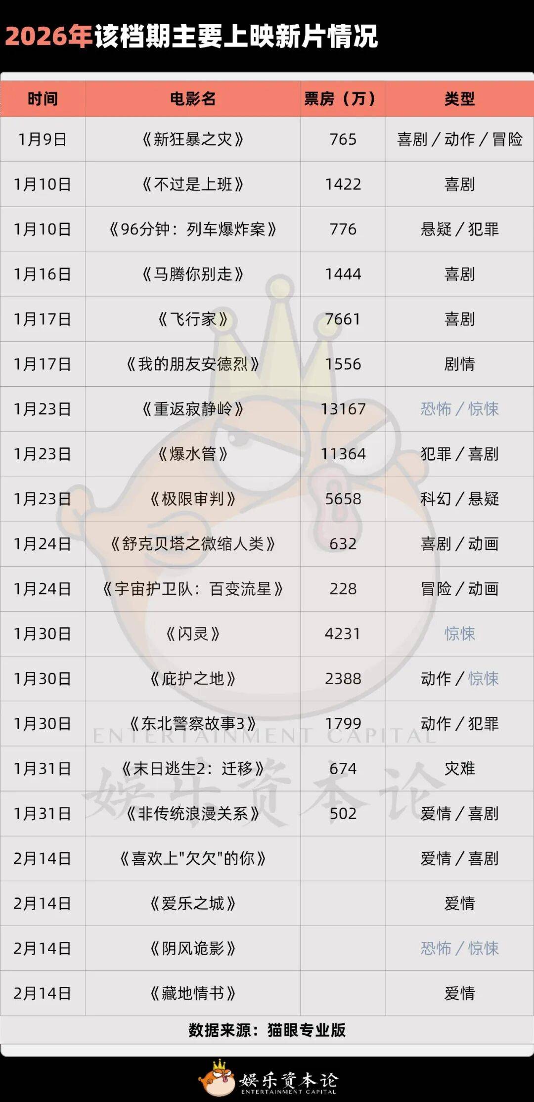 包括情人节在内,今年春节前的“预热档期”共有47部新片上映。受农历春节日期波动影响,每年元旦之后、春节之前的这段市场淡季,长度可从十余天延至四十余天不等,过去常因表现不稳定而被视为“票房洼地”。