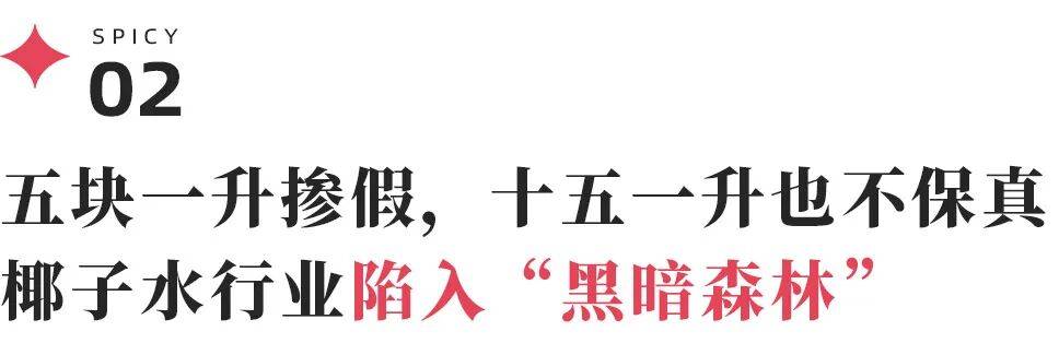过去的椰子水造假更像一场谁也说不清的“浑水战”,“内行人都知道造假多,低价不现实,但都没法甩出证据讨论谁是假货,有些品牌就是梗着脖子说自己是赔本赚吆喝,谁都奈何不了。”椰子水资深从业者小王表示。