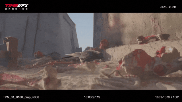 “这一镜头的成功,依赖专业团队的审美把控 ——AI 生成动态画面后,团队通过绿幕抠像与实体城墙融合,是人脑和智脑的结合,而非让 AI 替代创作。”如此融合创作方式让观众忽略了技术存在,只聚焦于画面传递的残酷乱世的时代背景。