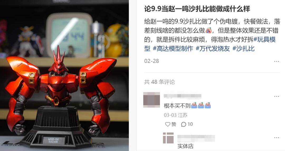 上个月,赵一鸣端出了由日本万代授权的高达胸像明盒,售价同样为9.9元:此前,万代食玩部的小型成品模型国内售价多在40-80元,而特殊配色和彩色透明材质更是“基地限定”的代名词,拼装部模型的市价都在300元以上。不少人为此第一次开始搜索附近的赵一鸣门店:“9.9挺大一只还带点可动,造型也正,买半只回来练手改造已经够划算了,它还送我一颗糖。”