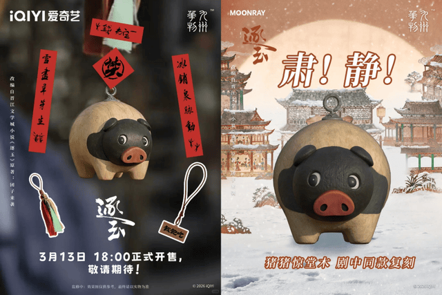 再往后,“惊堂猪”就是最典型的例子。它本来就在剧情里有存在感,又带点喜感和生活气,很容易被观众认领出来。这种形象一旦出圈,几乎是天然适配各种周边形态,做成挂件,可以随身带;做成毛绒或者棉娃,是陪伴感;做成小摆件,也成立。它不需要复杂设计,光是“这个就是那只猪”,就已经足够有吸引力。
