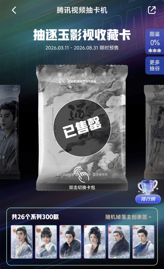与过往有所不同的是,在卡牌盲盒这一品类下,除了常规推出的爱奇艺自营官方影视收藏卡之外,更增加了与四个不同潮玩品牌合作的共五个品类、八个款式的产品。
