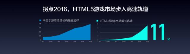 现在的情况我也称之为雅达利现象,现在HTML5游戏开发者的数量增长非常快,但是非常好的创新的内容非常的缺乏,不能满足真正用户的需求,仍然有提升的空间。我们看商业模式的改变,2014年工具类付费一直在增长,可以看到2014年到2016年增长非常迅速的。从用户群体来说,HTML5游戏2014年的时候不到一个亿,确切的说有8000万左右,2015年1.5亿-1.7亿之间,2016年是超过2亿的市场规模,移动用户2015年3.95亿,2016年超过4.5亿,这里面有超过30%的用户是没有重合的。