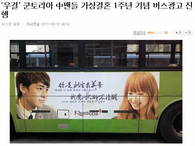 户外广告应援就更是五花八门了,曾经因一档韩国综艺节目火起来的维尼夫妇(2PM成员Nichkhun和f(x)宋茜)的CP画报就被韩国粉丝们张贴在公交车。