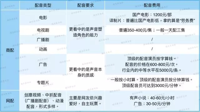 商配一般分两类,重合度很少。一类专门配电视剧、电影、动画、广播剧,比较注重声音表演;另一类配专题片、广告,对声音本身要求比较高。