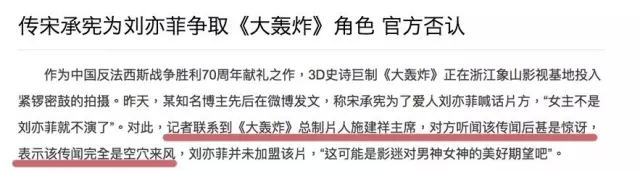 然而,热衷曝光的施建祥本人却并非深谙宣传规律。据娱乐资本论了解,在刘亦菲和《大轰炸》主演宋承宪公布恋情时,《大轰炸》宣传团队本来想利用#宋承宪力保刘亦菲出演大轰炸女主角#话题带动《大轰炸》本身的热度,为此宣传团队给施建祥安排了好几个采访,但施建祥却在采访时亲口否认刘亦菲出演,一句话就让宣传策略化为泡影。