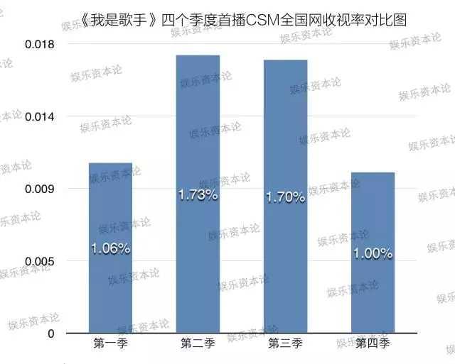 从首播CSM全国网收视来看,第四季1.0%,第三季1.7%,第二季1.73%,第一季1.06%。