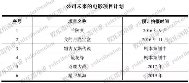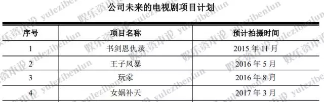 在电影业务方面,公司已经投资拍摄《战神蚩尤》和《爱的频率》,公司计划于 2016 年开始每年拍摄一部大型古装剧和一部现代剧。