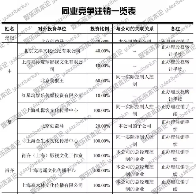 张纪中甚至还因担任湖南美猴王影业有限公司总经理,与其签订合同,等《美猴王》电影制作完成后,湖南美猴王影业有限公司不再直接或间接从事或参与任何在商业上对纪中文化构成竞争的业务及活动,如果《美猴王》电影未能在 2018 年12 月 31 前制作完成,湖南美猴王影业有限公司将以注销或重组方式解决同业竞争问题。