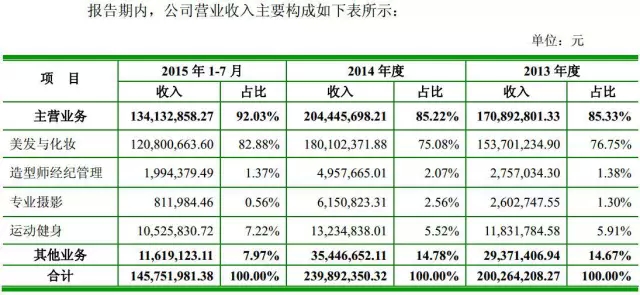 目前,东田时尚已经衍生出了健身、摄影、造型师经纪等多种业务,但主营业务收入的8成以上还是来自美容美发。