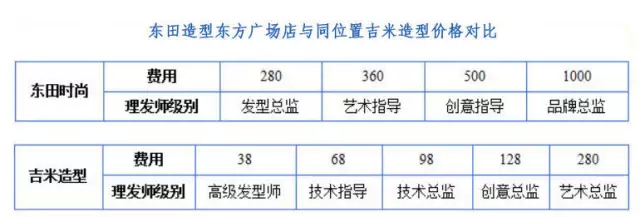 离该店不远的吉米造型,价格几乎只是东田造型的“一个零头”。