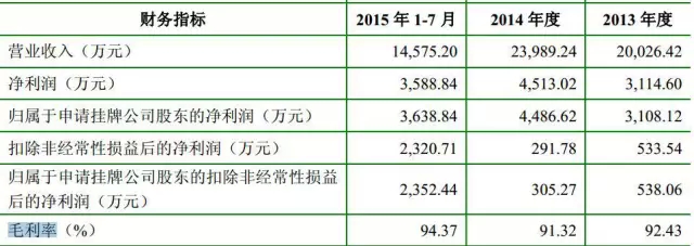 纵览东田时尚招股书,最引人注目的,就是这家公司极高的毛利率。2015年1到7月,这一数值高达94.37%,部分业务的毛利率甚至是高达100%。然而,如此之高的毛利率并未成为东田时尚快速登陆资本市场的动力,反倒成为了一大阻碍。