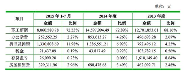 原来,高达94.37%的毛利率,是因为东田时尚仅仅将化妆和洗护用品等计入了成本,而占公司支出大头的人工成本,则是体现在了销售费用和管理费用两项当中。
