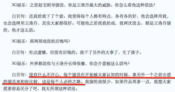 这样看来似乎是王珞丹完胜了白百合,但白百合却在微博上直言,有女星雇水军黑自己。而想想与白百合有资源争夺的女星,似乎就能明白白百合指的是谁了,但究竟事实真相是什么,小星也不得而知了。