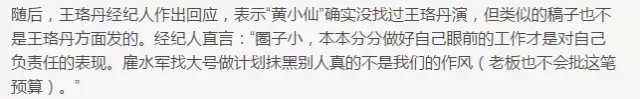 王珞丹经纪人也马上作出回应,和王珞丹的气质一样,回应是一惯的云淡风轻,完胜滕华涛,其实也就完胜了滕华涛力挺的白百合