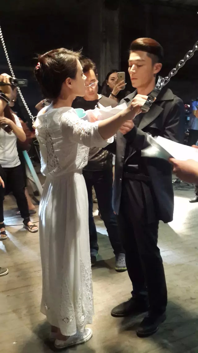 这场戏的重磅之处在马思纯与霍建华两位主演之间的“吻戏”,不仅要吻,还要舔和咬哦,霍建华还戏称这是摄制组故意安排的,“平常没有,你们一来就有了”。
