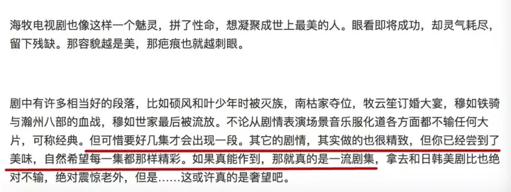 这么说来,《海牧》的叙事节奏也许真的跟常规电视剧有比较大的出入。因为今何在在长微博中还有另一段话是这样说的