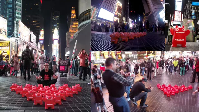 当然,等对方上门不是全然守株待兔。雨海告诉河豚君,成立第三年的魔鬼猫搞了件大事,就是当时在动漫圈比较轰动的“魔鬼猫占领纽约计划”:数十只魔鬼猫在时代广场列队,引来众人围观。