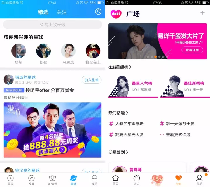 除了爱奇艺,优酷、腾讯目前也都在做粉丝社区,优酷有星球,腾讯是doki,产品功能也无外乎以帖子为基础的互动、明星个人圈子、排行榜、明星专访等。看来视频网站都有往兴趣社交发展的意思,而且把粉丝作为重要开发对象,那这次究竟能否影响大局呢?