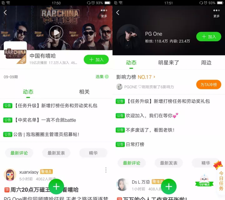 《嘻哈》就是这样导流了6382.6万,而且这个6000多万只是第一次链接跳跃产生的,后期用户可以直接从正片播放入口进去,所以理论上泡泡给正片带来的播放远远超过这个数,他们统计的只是冷启动时的第一跳。 在之后,《中国有嘻哈》相关圈子人数达到了759万,讨论帖数2210万,而这些人就是下一季的精准用户。