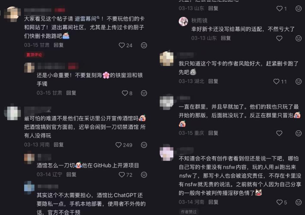 从与用户们的交流中,小娱得知大家最抗拒商业化的核心,与“吃牢饭”有关。许多角色卡的尺度都很大,而且涉及一些小众性癖,这也是为什么“幕间”要商业化后,许多用户删卡跑路的原因——不能留下“罪证”,删卡保平安。