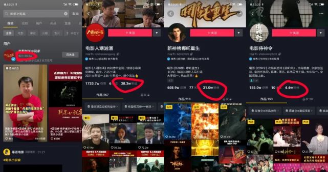 复盘春节档影片营销,不同电影在抖音的营销效果相差悬殊。目前,《侍神令》官抖只有4.4万粉丝,同期其他影片官抖粉丝至少30万以上,《你好!李焕英》的官抖账号粉丝最多,有298万。