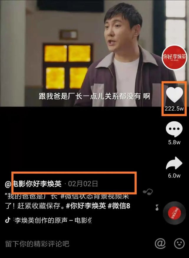 在抖音上,自身吸引大流量的视频或者主题会得到平台更大的流量推荐。就像今年《你好李焕英》,影片上映前期,形成了强大的观影期待,相关视频在抖音上自发传播,有些点赞量在100万次以上。无疑影片上映之后,抖音的自然会给到更大程度的曝光。