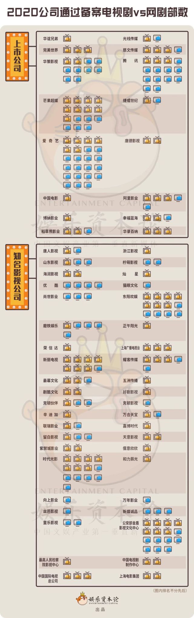 娱乐资本论统计了2020年670部通过备案的电视剧和1083部完成规划备案的网络剧,通过上市公司和非上市公司两大类,以及通过不同月份分类,制成下图,详情分析可见下文。