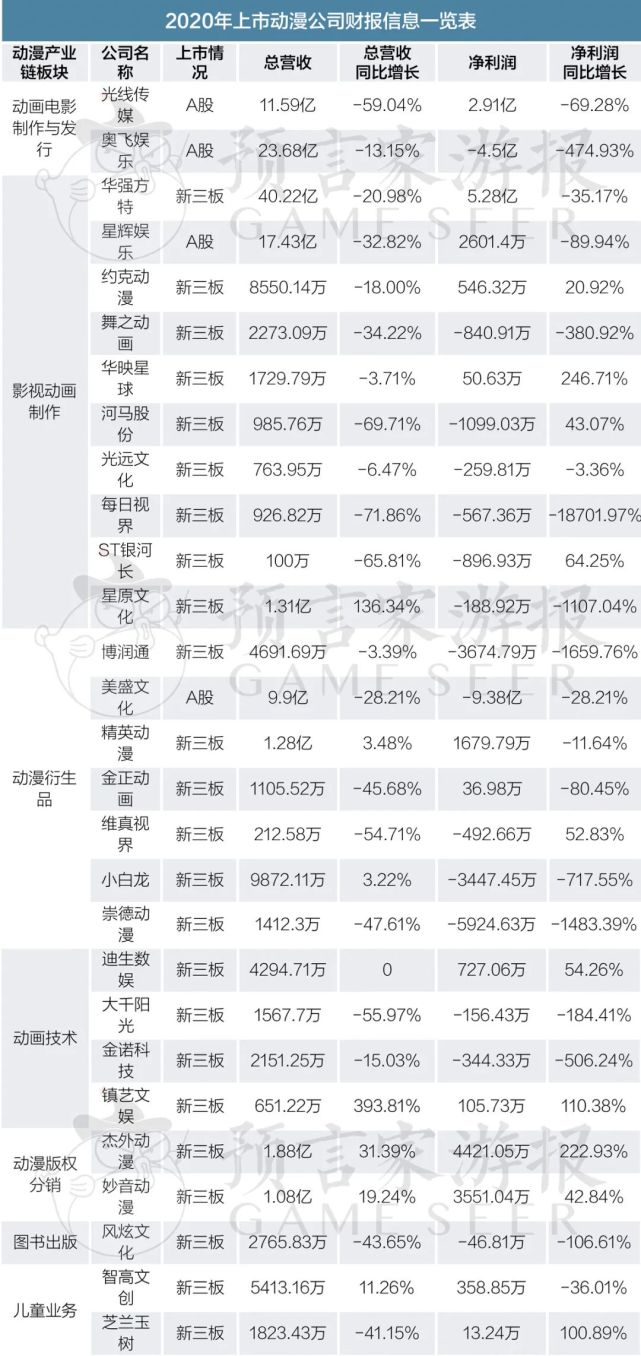 近日,动漫公司先后披露了2020年的财务报表。整体来看,受疫情影响及动漫行业整体的市场不景气,上市动漫公司在去年的整体成绩并不理想。