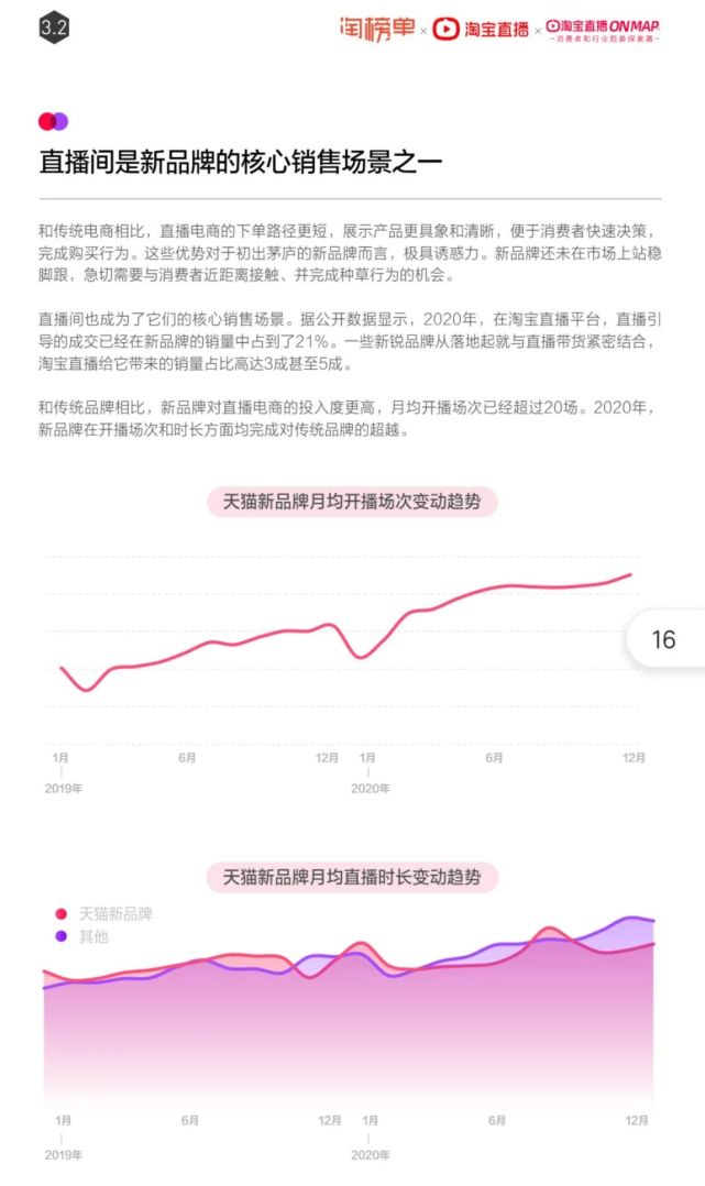据统计,有9成新品牌在淘宝开播。新品牌在淘宝直播中的投入力度也在增大。在直播场景中的积极投入,加速了新品牌进军市场的步伐。2019年,新品牌成交金额上升,同比2019年,2020年新品牌在直播间的成交高达329%。