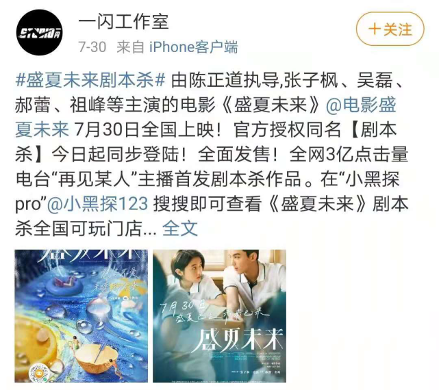一周前,《盛夏未来》在院线端上映,官方授权同名剧本杀随即公布了发售的消息,引起了许多电影观众的好奇心。