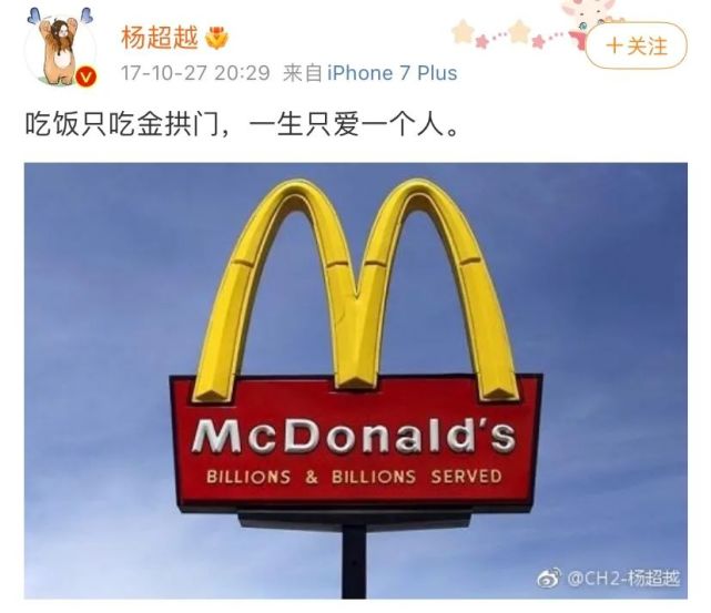 2017年10月,还未走红的杨超越在微博上多次表达对麦当劳的喜爱。当时的吃货小迷妹不会想到,四年后的此时,观众们会在麦当劳抖金店直播间疯狂刷屏,呼唤“代颜小仙女”超越登场。