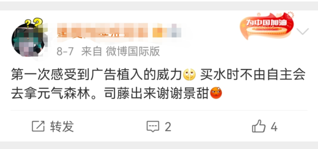 这也让在剧中深度植入的元気森林获得了更多曝光。不少剧粉甚至在弹幕中高呼“元気森林到底给《司藤》打了多少钱!”足见对品牌的印象深刻。