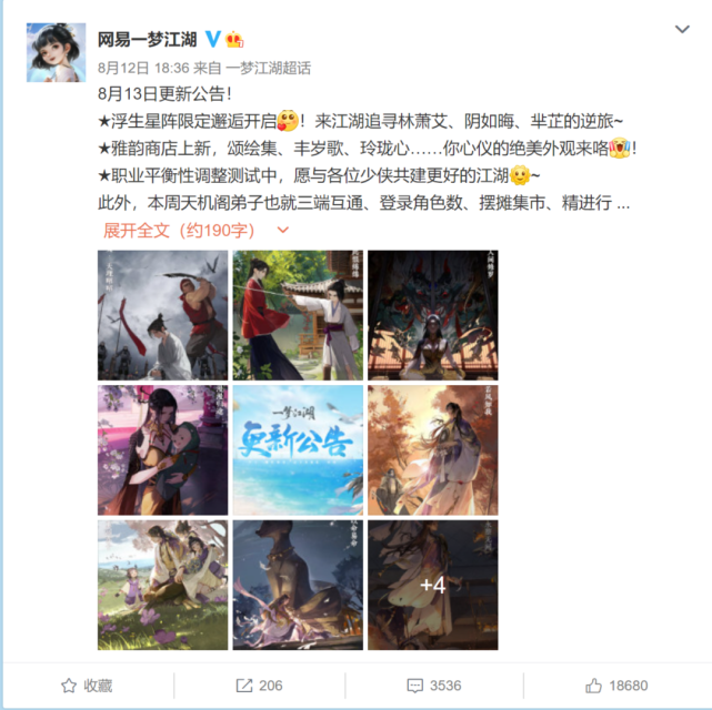 作为这次事件的焦点,8月《一梦江湖》对外宣布了职业平衡性调整的更新,颂绘集、丰岁歌、玲珑心等时装也会同步登陆侠米积分兑换商店。这次更新成为了玩家们彻底爆发的开端。