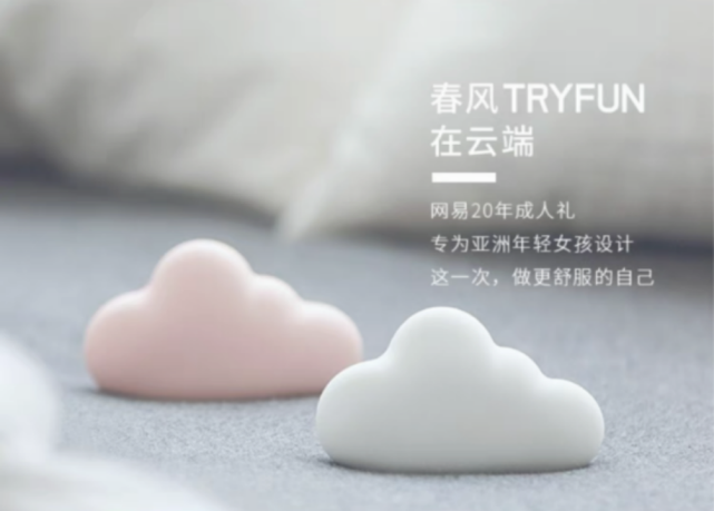 2017年10月,网易上线原创成人情趣用品品牌——网易春风,主打性冷淡极简风格,一款“在云端”产品外观类似云朵,小巧可爱,定价也在300元左右。