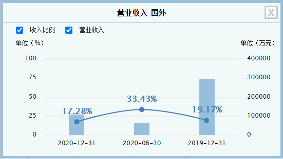 万达电影国外营收情况(图片来源:同花顺)