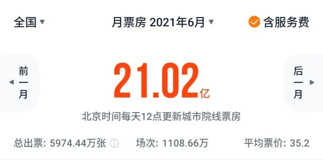万达电影扭亏有多方面的因素,首先得益于国内疫情状况趋于好转,截至2021年6月27日,全国实现总票房 249.1亿元(不含服务费),其中万达公司实现票房35.3亿元。