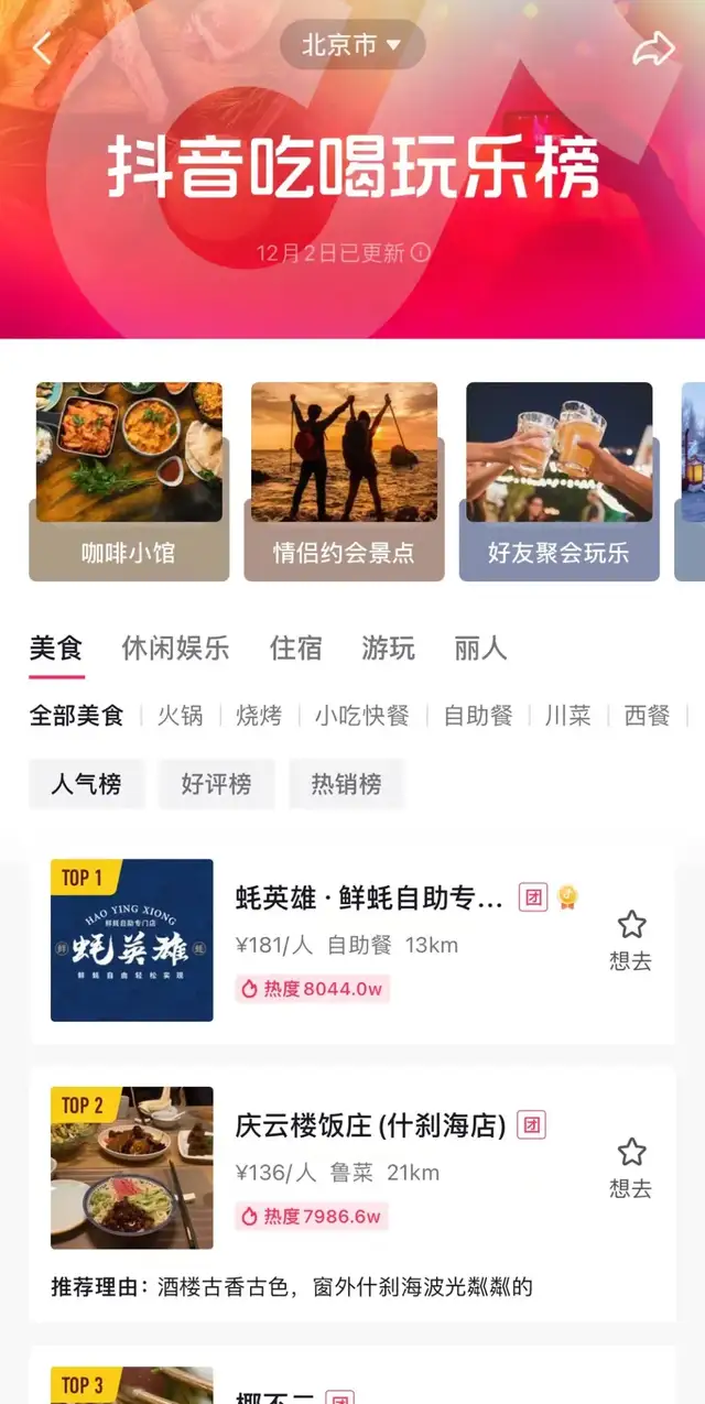 “最意经典”餐厅是北京吃喝玩乐榜中西餐人气榜的第一名,2.8折的双人经典套餐售价是88元,目前已经卖出840份。据餐厅的刘经理介绍,最开始是抖音先联系的餐厅,邀请餐厅推团购套餐,抖音平台可以免费安排达人来拍摄。