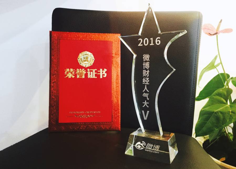图为:金融八卦女荣获“2016微博财经人气大V”
