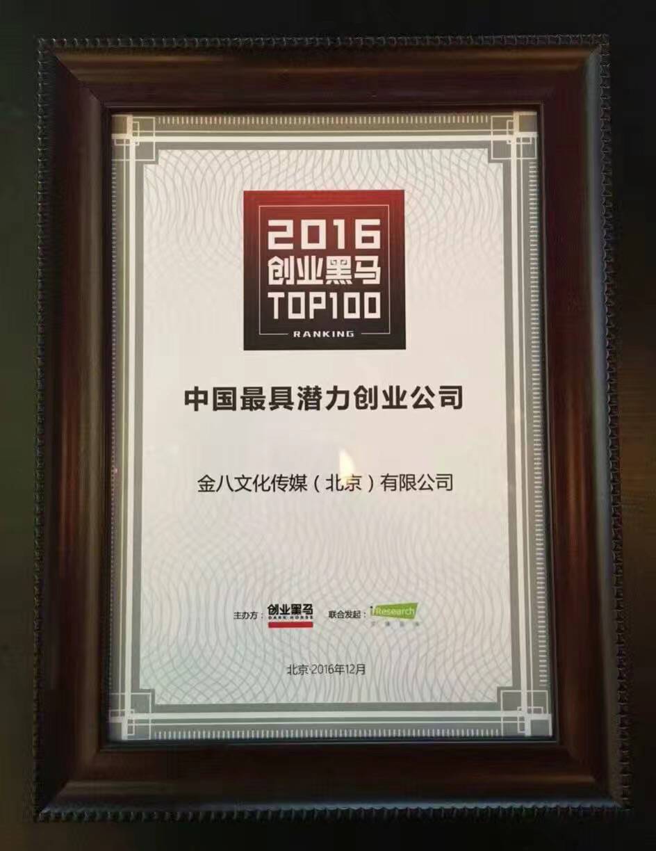 图为:金八传媒荣获“中国最具潜力创业公司”
