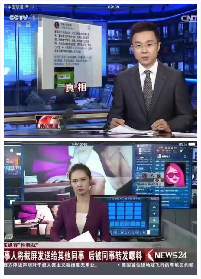 图为:CCTV1晚间新闻、东方卫视新闻节目《子午线》等媒体将金融八卦女爆料作为唯一援引来源进行报道