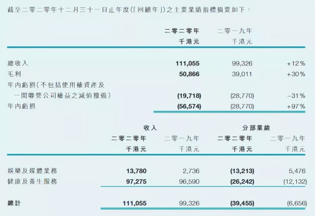 并且从中也可以看到,健康及养生服务才是华谊腾讯娱乐收入大头,2020年占财报营业收入的87%,是相对稳定的收入来源。