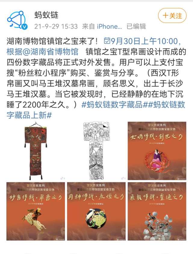 博物馆IP数字藏品同样成为新风潮。湖南省博物馆、中国国家博物馆、成都金沙遗址博物馆上线的数字藏品销量均十分火爆。