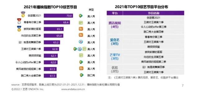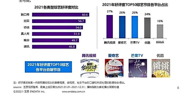 而根据艺恩报告,独播网综上线数量最多、播映指数top10综艺中数量占比最高、好评度top50综艺中占比最高的腾讯视频,显然做到了这点。