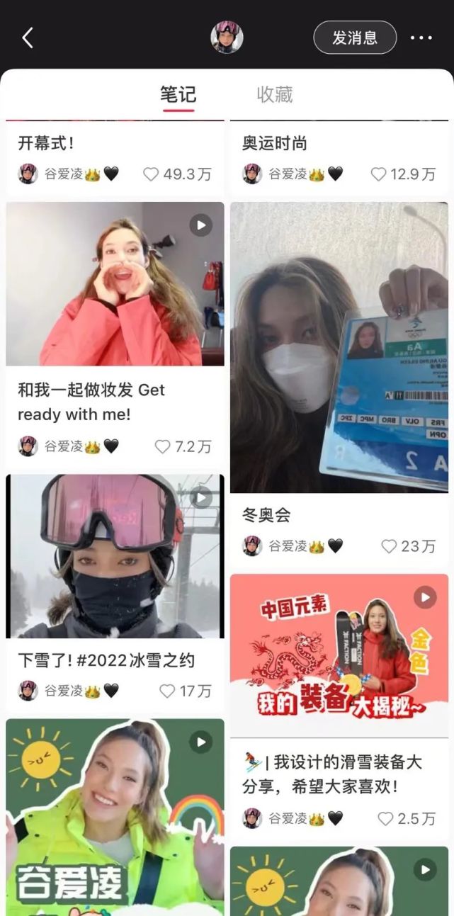 自由式滑雪空中技巧运动员徐梦桃会在小红书上分享自己的比赛故事和感悟;花滑运动员陈虹伊入驻小红书首条视频获得5.1万点赞;短道速滑运动员林孝埈开通微博账号后,一夜涨粉80万。
