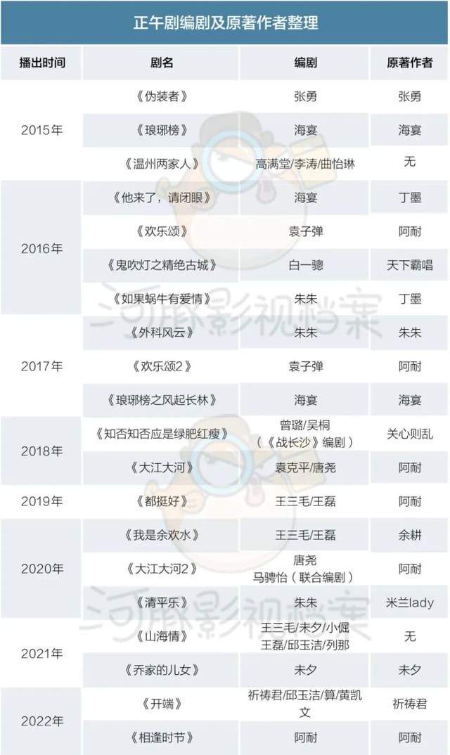 从合作历程来看,正午愿意花力气培养新人,也是出于长远考虑,这些作者无一例外都和它开启了二度、三度合作。有时候,他们不仅改自己的小说,也会担任其它IP的编剧,海宴改过《他来了,请闭眼》,朱朱改过《如果蜗牛也有爱情》和《孤城闭》。