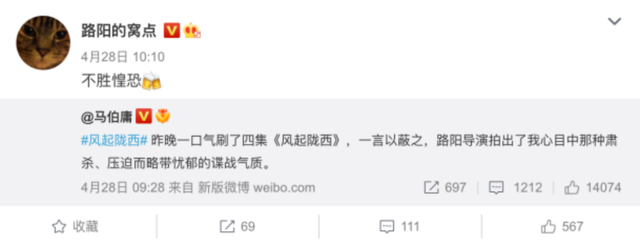 在口碑发酵的第二天,原著作者马伯庸还在微博对剧方的工作和审美表示了肯定。以往观众在对改编作品不满时还可以联合原著作者一起吐槽,现在这个通道也被堵死了。翻看评分网站上的差评,不少评价也将矛头对准了马伯庸的原著。